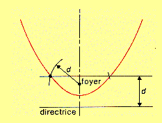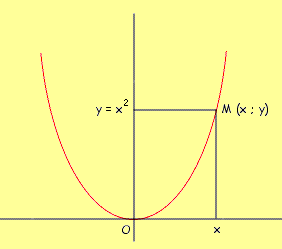 En outre, la définition la plus simple et sans doute la plus connue, énonce que l'ensemble des points M d'une parabole ont leurs coordonnées (x ; y) qui vérifient l'équation suivante : y = x2 |