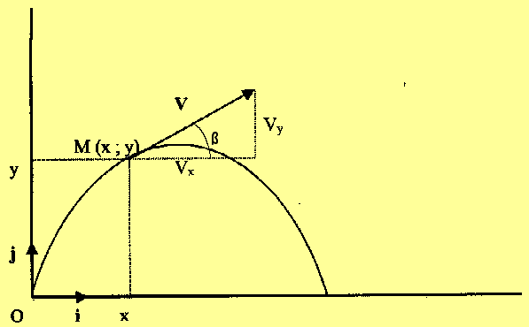 l'accélération de la pesanteur) x = t.Vcos ß y = t.Vsin ß -